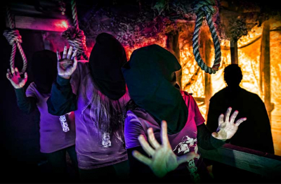 Confront the Elements, Face the Darkness, Endure the JourneyThe journey through Hell-ements is long and difficult, and you can’t see your way there—you can only sense it. Like all lost causes, you will be shrouded in a cloth hood and guided by the rope of your execution, taunted by the 'Shades of Hell' as you journey through the punishing elements of earth, wind, fire, and water.